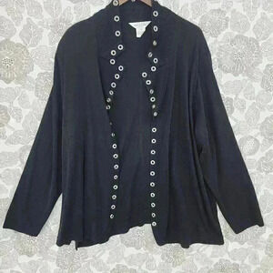 Vintage Misook Open Front Cardigan Women's 3x Black Front details 8942