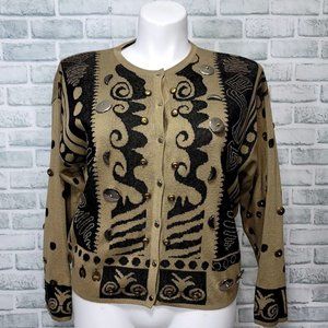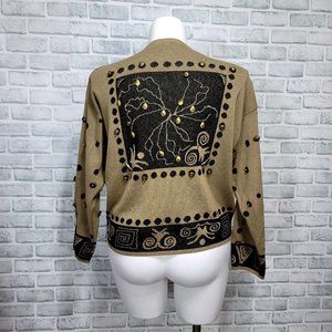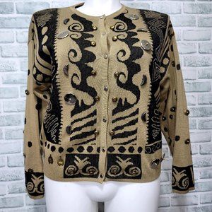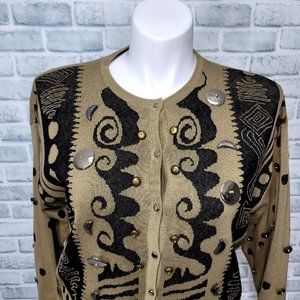 Vintage Miss Deanna Pour Toi Womens L Abstract Embellished Knit Cardigan