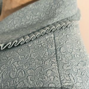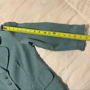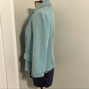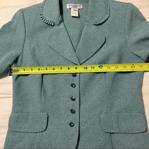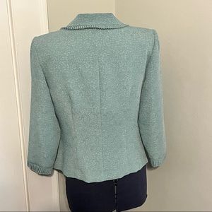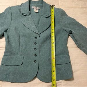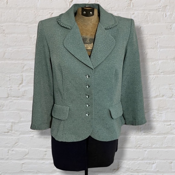 Vintage Miss Dorby Blue Ruffled Woven Floral Design Glass Button Blazer