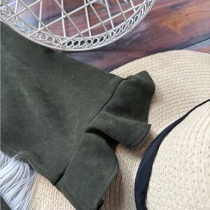 Vintage Miss Dorby Green Vegan Suede 3/4 Sleeve Floral Embroidered Button Up, 10