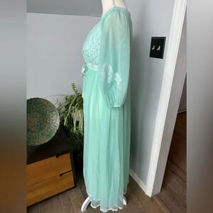 Vintage Miss Elaine 2 Piece Chemise Dressing Gown Set Mint Green USA Made Medium