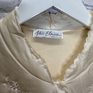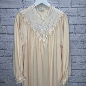 Vintage Miss Elaine Long Sleeve Fleece Nightgown Beige 1/2 Zip Ruffle Size M