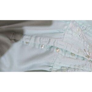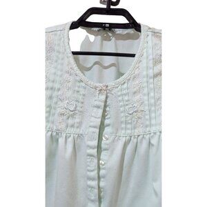 Vintage Miss Elaine Mint Green Embroidered Nightgown With Buttons - Size XL