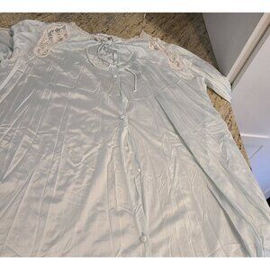 Vintage Miss Elaine Nightgown Size L ?? Blue Lace Button nightgown *flaws*
