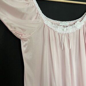 Vintage Miss Elaine Pink Nylon Nightgown Lace Trimmed Floral Embroidery Small