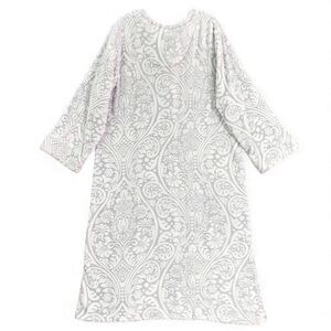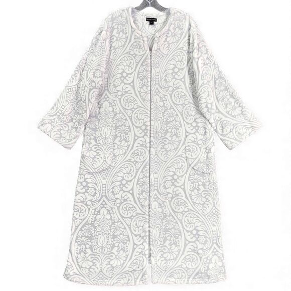 Stay cozy in this Miss Elaine plush fleece robe, designed for comfort and effortless style. This full-length housecoat features an elegant paisley damask embossed pattern, soft velour-like texture, and an easy full zip frontperfect for lounging, mornings, or winding down at night.