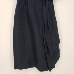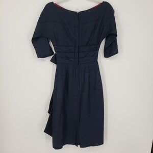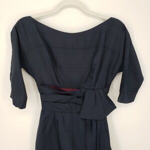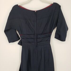 Vintage Miss Elliette Silk Shantung Wiggle Dress 00 Sheath Belted Bateau Navy