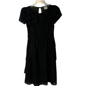 Vintage Miss Joni Dress Tiered Layer Ruffles Short Sleeve Black Career