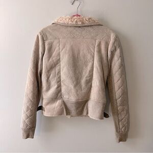 Vintage Miss Me Aviator Tan Suede Faux Shearling Jacket Size Small Beige Boho