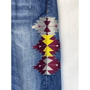 Vintage Miss Me Women 28 Blue Boyfriend Embroidered Button Fly Hippie Boho Jeans