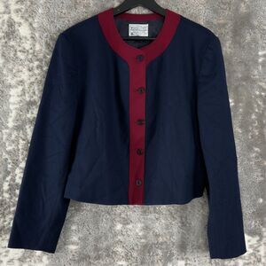 Vintage Miss Pendleton Sz L Pure Virgin Wool Round Neck Blazer Jacket Navy/Red