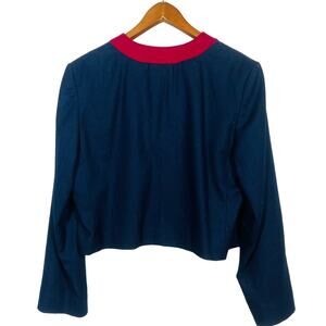 Vintage Miss Pendleton Virgin Wool Blazer Navy Maroon Button Front - M