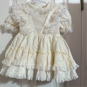 Vintage Miss Quality Ivory Lace & Ruffles Full Circle Pageant Party Dress