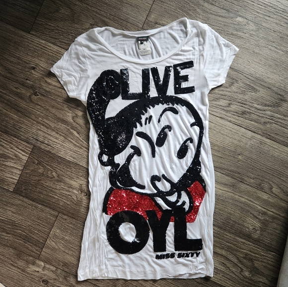 Vintage Miss Sixty Olive Oyl Graphic Tunic Tee Size Small Sequin Graphic