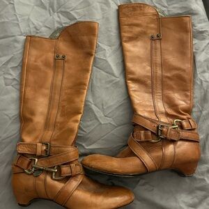 Chic vintage knee high boots by Miss Sixty. Stylish buckle accents, with Miss Sixty charm and kitten heel. Slightly higher in front to give a unique look. Perfect for versatile wear. In good condition.