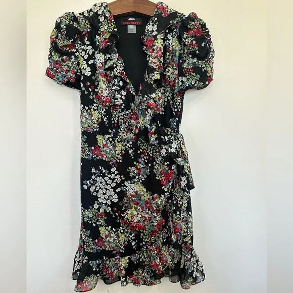 Vintage Miss Sixty Y2K Puff Sleeve Wrap Dress