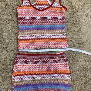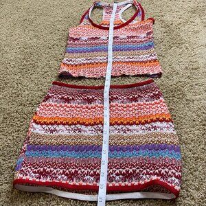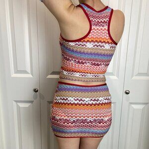 *RARE* Vintage Missoni Mare matching tank top and miniskirt set! Very stretchy, will fit range XS-M. Has a 90s scrunch texture - most likely a polyester / viscose blend. Tag missing from top only, but the set came together and has Missoni Mare "made in Italy" on skirt. Otherwise excellent condition, no flaws on fabric. This collector designer set is super festive. OPEN TO OFFERS!