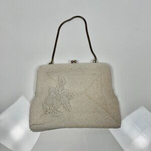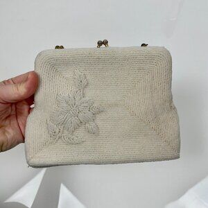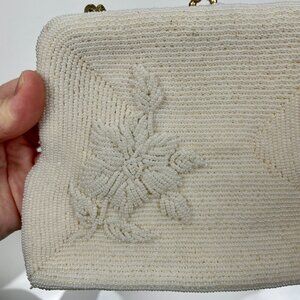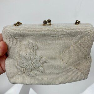 Vintage Mister Ernest Ivory and Brass Handmand Hand Beaded Pearl Mini Purse