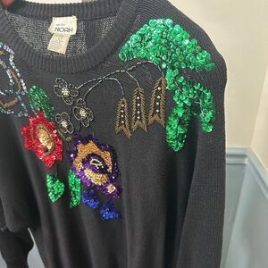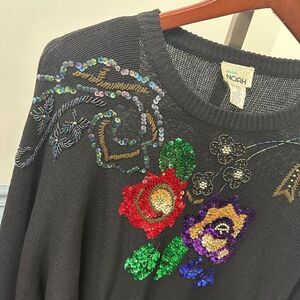 Vintage Mister Noah Beaded Sequin Floral Design Pullover Sweater Size Large