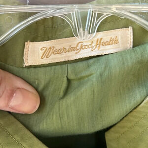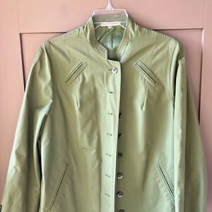 Vintage Misty Harbor Sz 16P Light Green Button Down Trench Coat Long Line