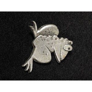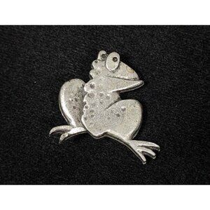 Vintage Mitzke Signed Pewter Sitting Frog Pin Brooch