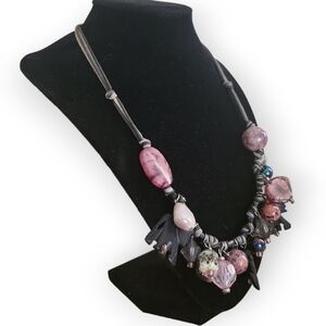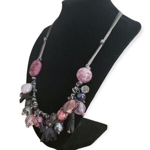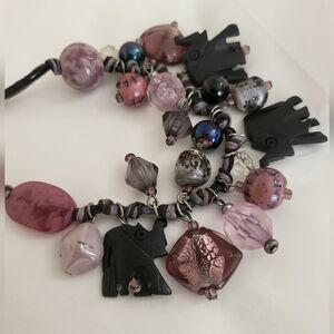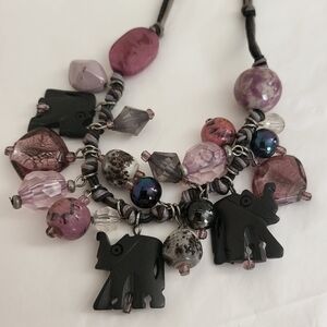 Vintage Mixed Bead on Knotted Rope Bohemian Necklace with Tanga Nut Elephants