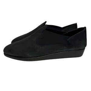 Vintage Mixed Blues Women Size 8 Black Nubuck Slip-On Loafers Comfortable Narrow