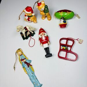 Vintage Mixed Christmas Ornament Lot — Nutcracker, Bears, Angel, Rocking Horse &