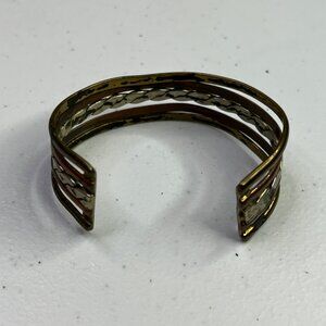 Vintage Mixed Metal Copper & Brass Open Cuff Bracelet With Braided Design