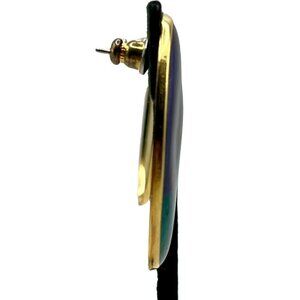 Vintage Mixed Ocean Swirl Shimmer Earrings Gold Tone Statement Posts Oversized
