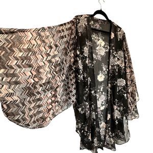 Amazing Vintage Mixed Print Unisex Kimono, made in a semi-sheer chiffon.