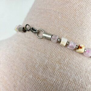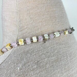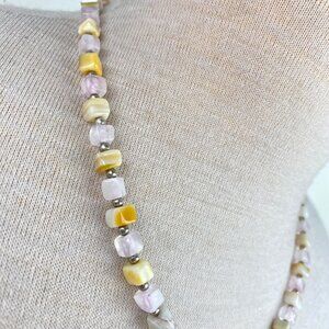 Vintage Mixed Square Stone Bead Necklace Hook Closure 21"