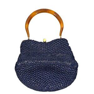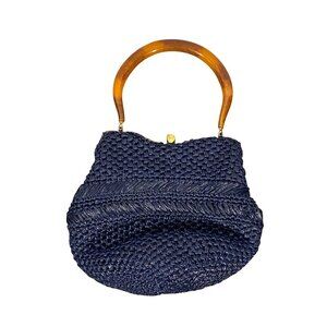 Vintage Mm Morris Moskowitz Mad Hatter Blue Woven Lucite Handle Handbag hobo