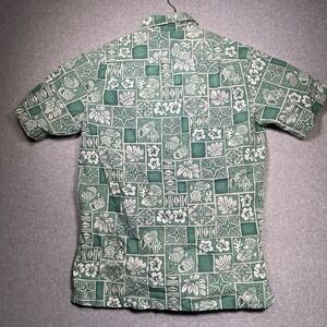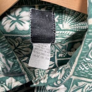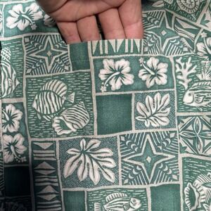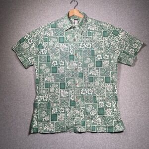 Vintage Moana Shirt Co. Green Floral Fish Tribal Aloha Shirt Coconut Buttons L