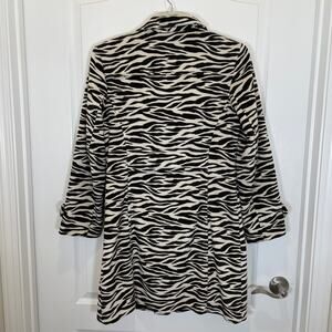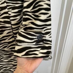 Black and ivory zebra print faux fur vintage coat by Mixit. The perfect addition to your mob wife aesthetic collection! Features side slit pockets and covered buttons. Excellent pre-owned condition. Bust across the front area measures approx. 19 inches.