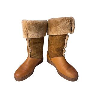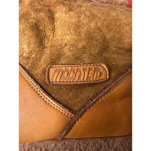 Vintage Mocatem Men 11E Shearling-Lined Tan Leather & Suede Boots Warm Comfort