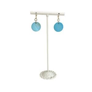 Features: Mod style Aqua Blue circle drops dangle from silver hook closure. Every day casual style.
