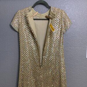 This is a vintage sequin basketweave dress. It is not perfect. I did not see any obvious flaws. Please see pictures for full description.