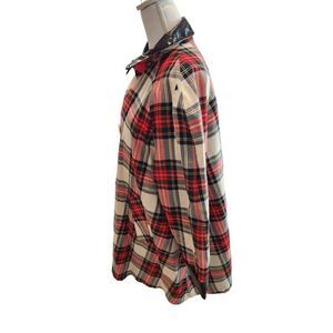 Vintage Walk London Womens Red, Green, White Plaid Reversible Patent Leather Rain Jacket Size XL/XXL Punk Rocker Retro