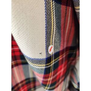 Noted many small holes throughout plaid side of jacket. Please see pictures