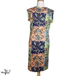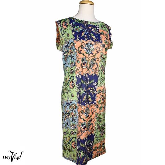 Vintage Mod Sheath Dress Bright Floral Stretch Knit Size Large B36 W36 - Hey Viv