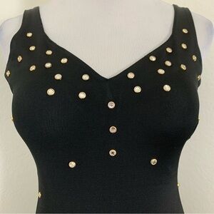 Vintage Moda International 90s Y2K Studded jeweled crystal Bodycon Mini Dress XS