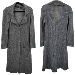 Vintage Moda International Mohair Duster Cardigan L Gray Button Down Pockets
