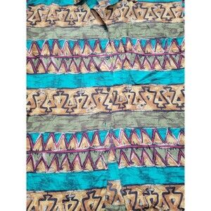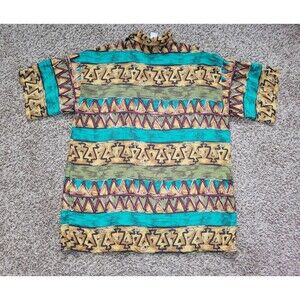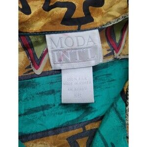 Vintage Moda International Shirt Top Button Up 100% Silk Abstract Tribal Size XS