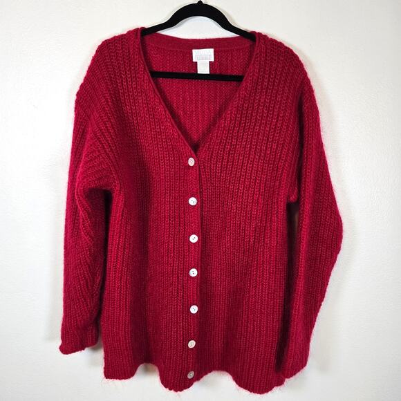 Vintage Moda Int'l Cardigan Womens M Red Mohair Blend 90s Minimalist Classic Preppy Oversized Lagenlook Lagom Festive holiday Cozy Cabincore