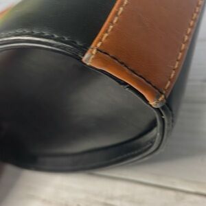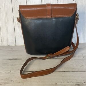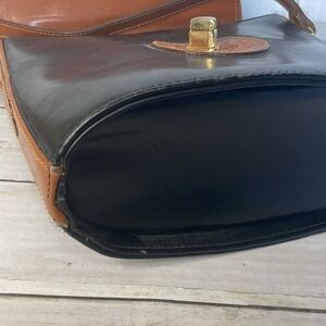 Vintage Moda Italiana Leather Black and Brown Turnlock Crossbody Bucket Bag