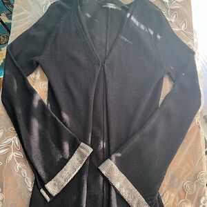 Vintage, Moda SZ S, black, full length, sweater with chainmail style cuff.