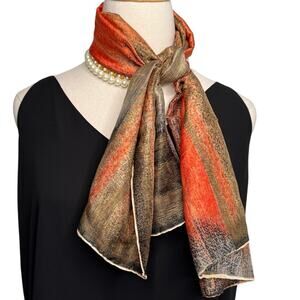 Beautiful, very vintage Mode Makers 100% silk Shantung hand rolled rectangle scarf!