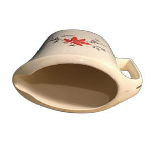 Vintage Modern Age Creamer Hand Painted Red Flowers With Yellow Gray Leaves