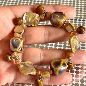 Vintage Modern MOP Mother Of Pearl Precious Stone Stretch Bracelet B#8